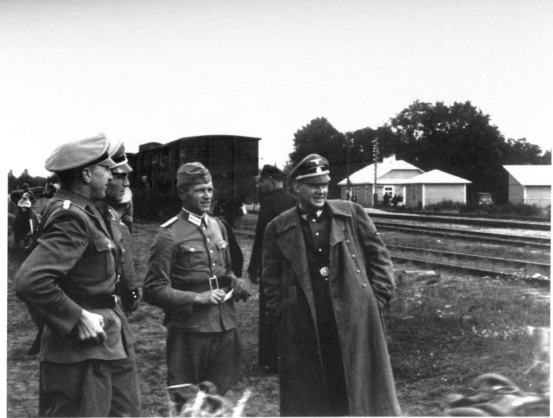 Одило Глобочник (крайний справа) посещает лагерь смерти Собибор, который работал с 15 мая 1942 года по 15 октября 1943 года. Здесь были убиты около 250 тысяч евреев.
