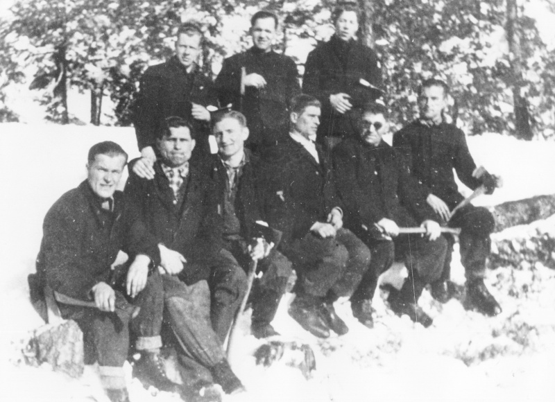 Советские, норвежские и югославские заключенные концлагеря Фальстад на отдыхе на лесоповале.