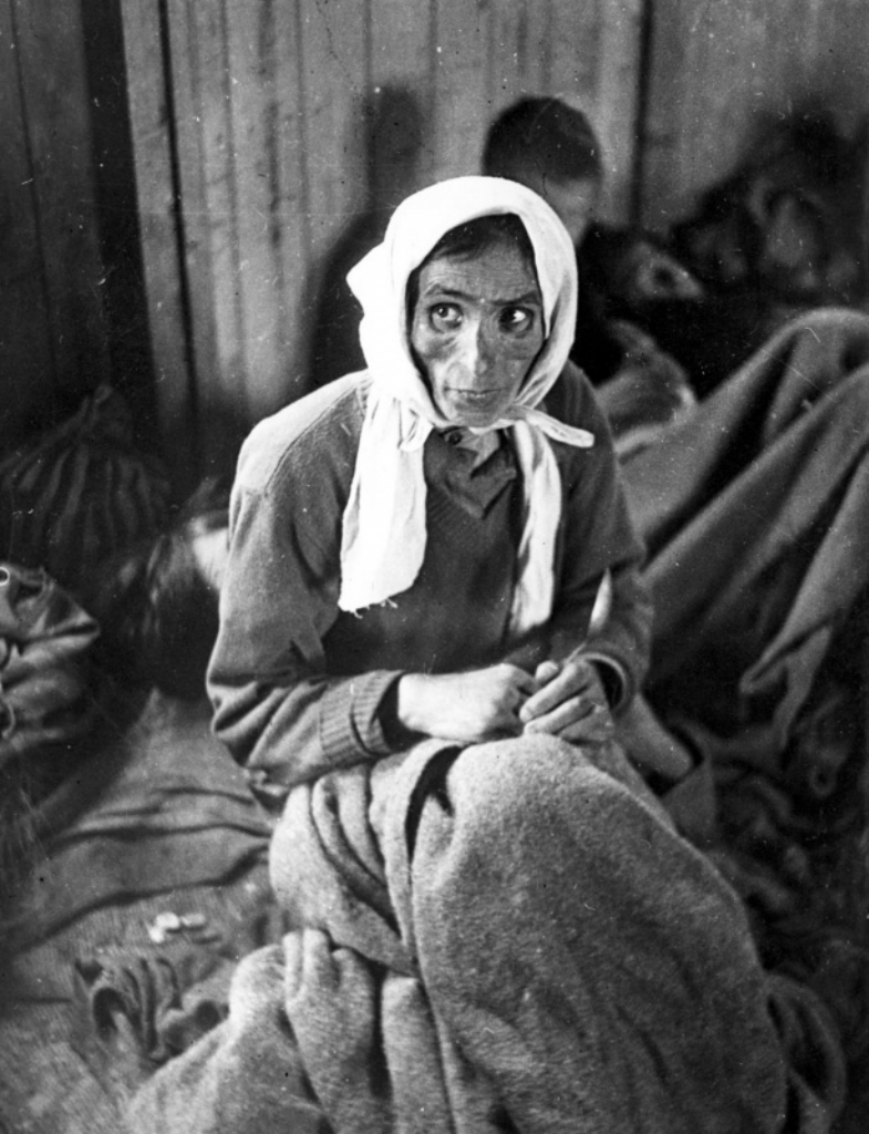 Освобожденная узница концентрационного лагеря Берген-Бельзен, заболевшая тифом в одном из лагерных бараков.
