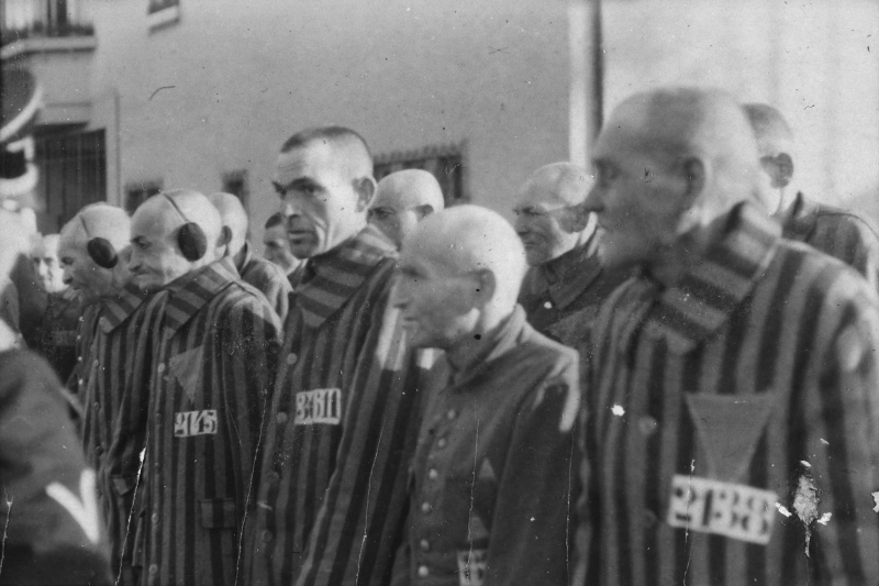 Портрет узников концлагеря Освенцим после его освобождения советскими войсками.
