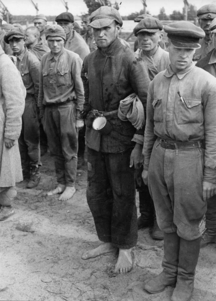Советcкие пленные в концентрационном лагере Ламсдорф (Stalag VIII-B, ныне - польская деревня Ламбиновице).