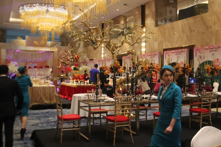"Сервировка стола, декор, оформление, все сопутствующие материалы - это комплименты, живые цветы, тойбастары, подарки молодоженам, гостям. Это все то, чего не хватает на рынке. Благодаря выставке многие молодожены этого сезона могут воспользоваться возможностью", - отмечает Жан Муканов.