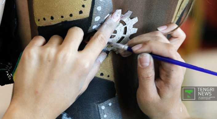 Над конкурсной темой национальных орнаментов другой участнице - Анне Бутузовой - пришлось серьезно поработать. "Каждый орнамент на голове модели в образе батыра имеет свое значение. Процесс меня настолько увлек, что мне попросту не хватило места и волос на голове для самовыражения", - рассказала она.