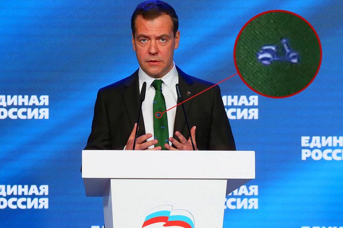 Ранее СМИ уже обращали внимание на галстуки, в которых ходит Медведев, отмечает ФедералПресс. Так, он появился на заседании думской фракции "Единой России" в ярко-зеленом галстуке. Причем на нем был виден принт в виде маленьких синих мопедов. Тогда один из блогеров указал, что на галстуке премьер-министра изображен культовый итальянский мотороллер Vespa. Оказалось, что аксессуар был произведен итальянской компанией. Его можно приобрести за 35 евро.