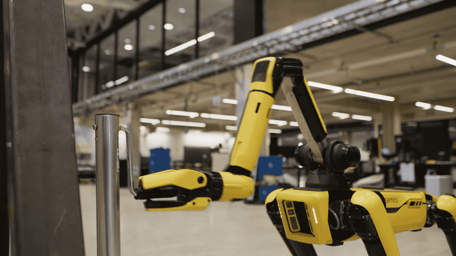 Робота-собаку Spot оснастили рукой-манипулятором, с помощью которой он собирает мусор в лесу и разбросанные по комнате вещи, открывает и закрывает двери, переключает рубильник на электрощите, высаживает растение в саду и рисует мелом.