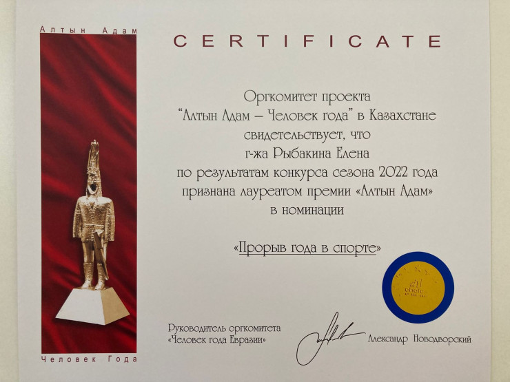 Елена Рыбакина стала лауреатом престижной премии "Алтын Адам"