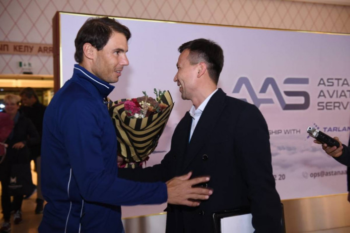 Первая и вторая ракетки мира серб Новак Джокович и испанец Рафаэль Надаль со своими командами приземлились в международном аэропорту Нур-Султана, передает Тengrinews.kz со ссылкой на Vesti.kz. Именитых гостей встречал президент Федерации тенниса Казахстана Булат Утемуратов.