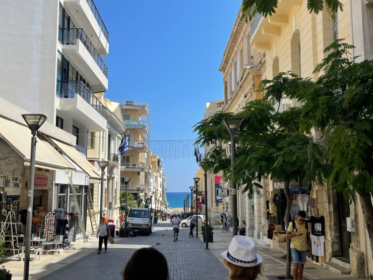 В Ираклионе много пешеходных улиц, вдоль которых расположены таверны, кафе, магазины, сменяющиеся средневековыми церквями, фонтанами и скульптурами. Кстати, если услышите громкие крики работников из-за прилавков или из кафешек, не пугайтесь: греки очень эмоциональный народ, они громко разговаривают и активно жестикулируют. Даже приветственное "калмера" (добрый день - прим.) греки словно напевают.