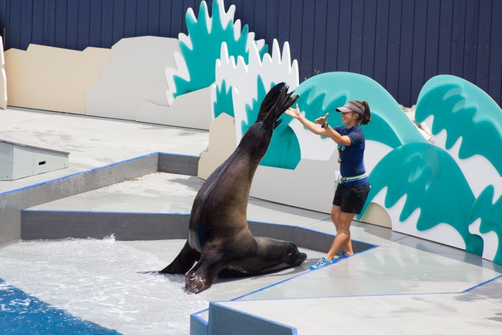 Сами котики показывали чудеса эквилибристики, казалось, радуясь вместе со своими очаровательными дрессировщицами. После представления все желающие могли посмотреть на морских артистов в непосредственной близости и понаблюдать, как сотрудники океанариума закапывают им капли в глаза и чистят кожный покров. Любой зритель мог и покормить животных с рук. Было забавно наблюдать, как морские исполины по-детски тыкаются своими носами в посетителей, выпрашивая угощение.
