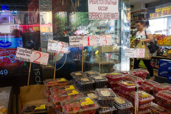 Если подробно описывать этот район, расположившийся на самом юге Бруклина, на берегу Атлантического океана, и населенный русскоязычными эмигрантами, не хватит всех страниц журнала. Да, действительно, здесь все говорят по-русски, и за все время я не слышала никакой другой речи. В Брайтон-Бич не существует ностальгии и по русской еде, потому что в супермаркетах продают все, что есть в наших магазинах: от сгущенки до кильки в томатном соусе. Главная же улица района чем-то напоминает большой рынок, и так же, как на любом нашем рынке, здесь можно недорого купить фрукты. Я с удовольствием ежедневно приобретала коробочку полюбившейся мне голубики в два раза дешевле, чем в других местах.