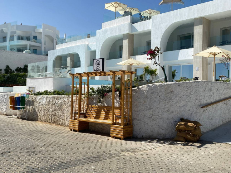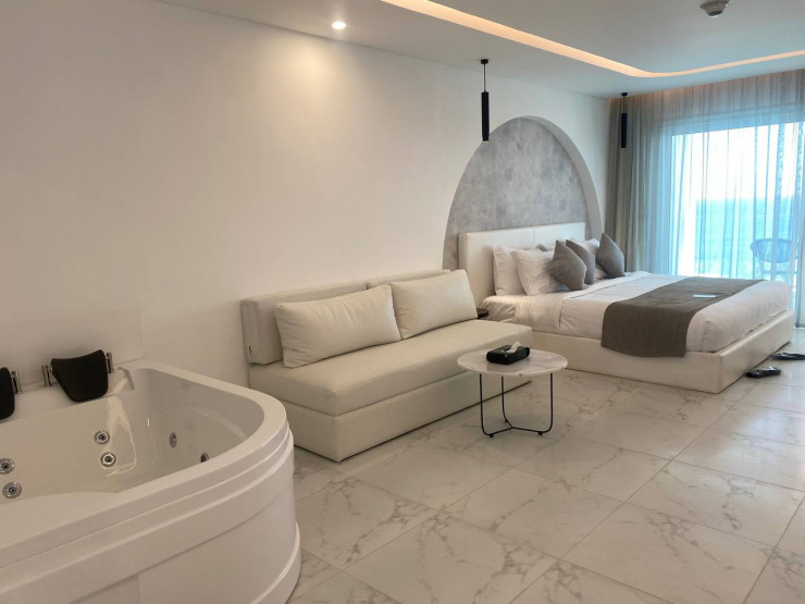 В отеле имеется более семи вариантов размещения в номерах. К слову, выполнены они в средиземноморском минимализме, который напоминает отели Санторини. Отметим также, что теплые бежевые оттенки интерьера в комнатах обволакивают своим уютом и дарят чувство комфорта.