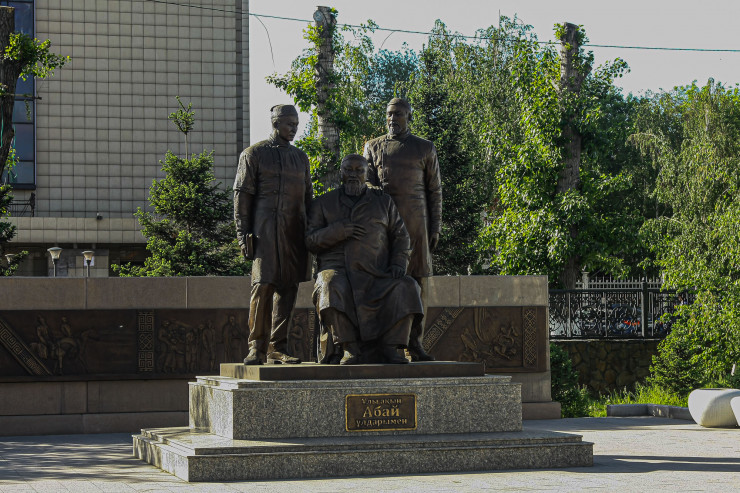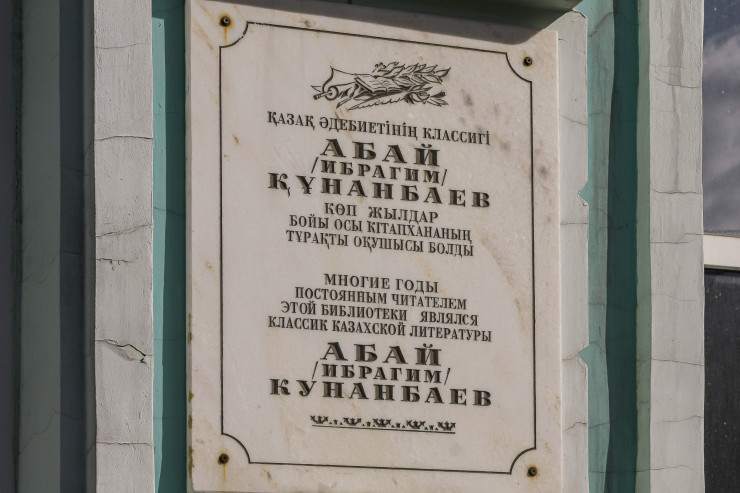 По диагонали от нее - Мемориальный музей Абая. Это целый комплекс зданий и обширный сквер с деревянной домовой мечетью (1860-е), и медресе Ахмета Ризы, где в 1854-58 годах учился мыслитель и просветитель Абай Кунанбаев, останавливался в этом доме.
