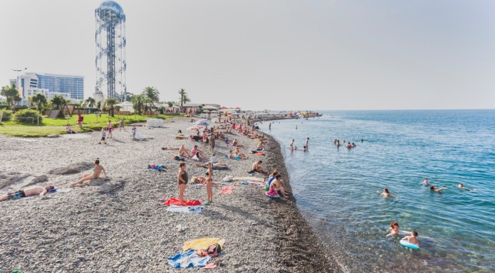 Батуми. Это самый крупный курортный город. Местные власти не жалеют средств на его развитие и благоустройство, что с каждым годом привлекает сюда все больше посетителей. Береговая линия Батуми преимущественно усыпана крупной галькой, но это не мешает отдыхающим нежиться на солнце. Основной пляж в Батуми тянется вдоль всей береговой линии, немногие приморские города могут похвастаться таким длинным и широким, около 30-50 метров, пляжем. И что совсем немаловажно для туристов, пляж, как и все пляжи Грузии, абсолютно бесплатный. Хотите ли вы понежиться на утреннем солнце, принять загар днем, полюбоваться красивейшими батумскими закатами - пожалуйста, пляж всегда вам рад. Правда, за шезлонги и зонтики придется заплатить 2 и 3 лари (примерно 600 тенге) на весь день, ну а для менее требовательных туристов подойдет галька, стоунтерапия и массаж обеспечены - и никаких затрат. Галька в Батуми крупная, что очень полезно при плоскостопии. Разбег цен на жилье здесь очень большой: начиная от 20 лари в сутки (примерно 2 500 тенге) за хостел и заканчивая сотнями долларов за пятизвездочные отели.
