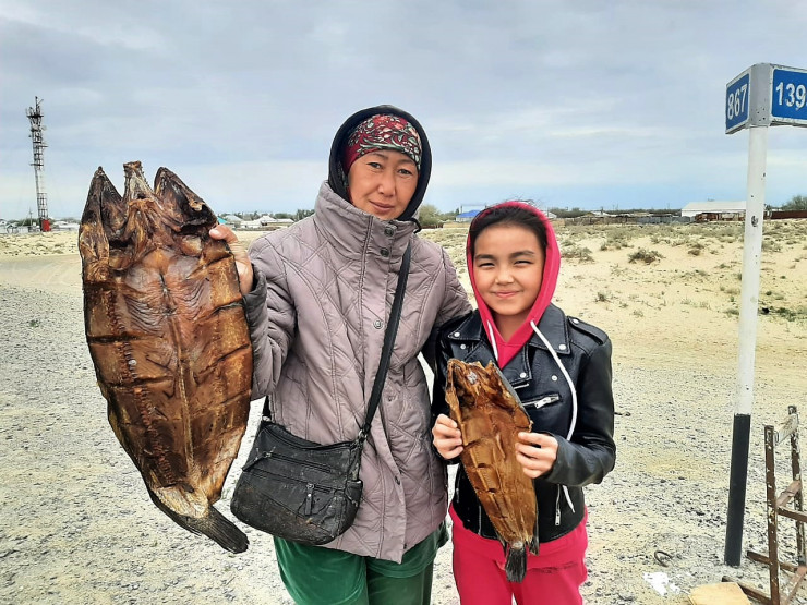Атмосфера опустынивания начинает ощущаться уже с Аралкума - небольшой станции в Кызылординской области (около 50 километров до Аральска). Вдоль трассы продают копченую рыбу, и тут же бойко по пустынной местности начинают бегать верблюды.