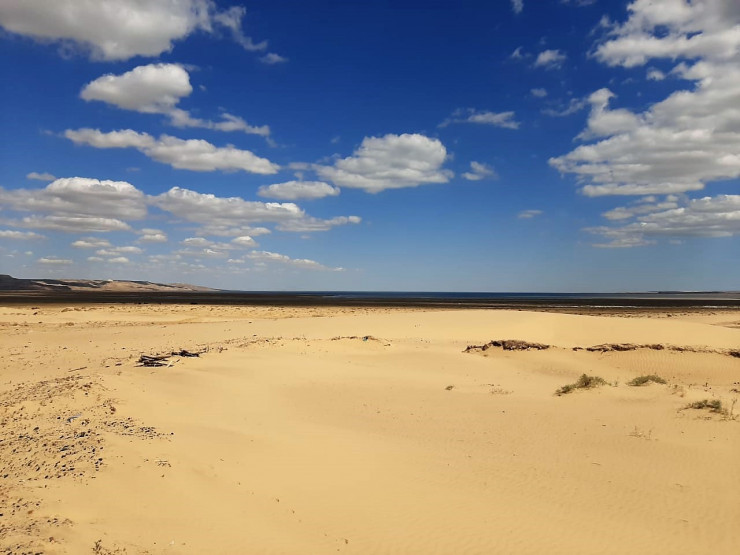 Дорога уводит в сторону Сексеула и еще дальше - в поселок Акеспе. На карте видно, что ранее этот поселок располагался непосредственно у побережья залива Бутакова. Сегодня вода отошла. Земля местами соленая, а местами - пустынная… Сам же поселок за считанные годы буквально занесло песками …