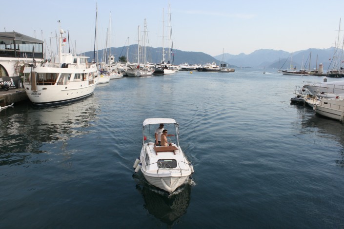 В голубом заливе между живописными горами раскинулся город Мармарис. Это типичный курортный городок с очень комфортным климатом, более благодатным в сравнении, скажем, с Антальей. Эти места отличаются, пожалуй, самым большим количеством туристов, которых мы видели в течение поездки. Местный причал просто переполнен яхтами. За сезон тут можно заработать большие деньги. Основная часть туристов - из России, Голландии, Испании и Италии. Очень много немцев и англичан, а из Казахстана практически нет. Хотя с одной соотечественницей нам удалось не только познакомиться, она с радостью стала нашим гидом.