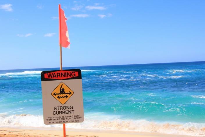 Подводные течения. Подводные, отбойные течения, или rip current, за несколько секунд могут унести в открытое море. При попадании в такое течение категорически запрещается пытаться плыть к берегу, поскольку его сила гораздо больше, чем у человека. Нужно плыть только вдоль берега, а потом, когда течение ослабнет или исчезнет, вернуться к нему, держась под небольшим углом. Для безопасности следует купаться на пляжах, где есть спасатели, находиться в зоне их видимости и соблюдать требования сигнальных флагов. К сожалению, на практике туристы не обращают внимания на предупреждающие плакаты и красные флаги. Часто на помощь приходят совершенно посторонние люди - старайтесь купаться рядом с другими отдыхающими и сразу зовите на помощь, если почувствовали, что вас уносит течением.