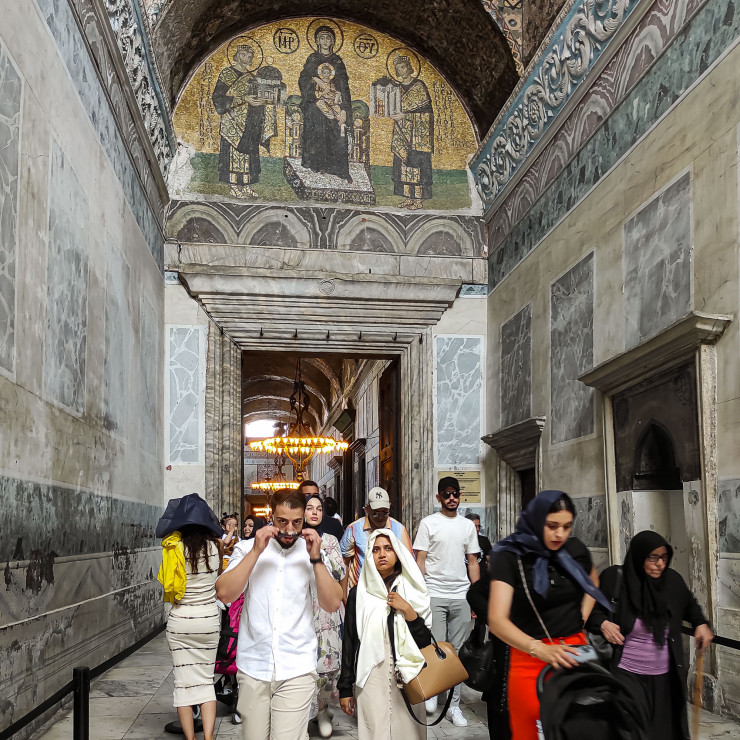 К храму были пристроены четыре минарета. Почти 500 лет он был мечетью, пока 14 ноября 1934 года Ататюрк не подписал указ о превращении Айя-Софии из мечети в музей. В 1931-1948 годах в результате археологических работ были раскрыты от штукатурки мозаики периода императора Юстиниана. А 10 июля 2020 года для Айя-Софии начался новый этап - президент Турции Эрдоган подписал решение Государственного совета об упразднении постановления правительства Ататюрка: Айя-София опять стала действующей мечетью.