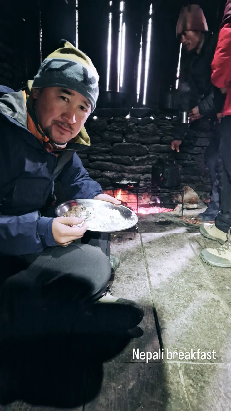 "Изначально купили билеты на самолет, но из за нелетной погоды (лесные пожары) ждали до обеда, затем решили лететь вертолетом, но время было упущено и вертолеты тоже перестали летать. Вернулись в гостиницу. 15 апреля с утра на вертолете смогли долететь до Покхары. Разместились в гостинице, погуляли по городу, заказали поздний ужин в хорошем ресторане", - рассказал Жумаев.