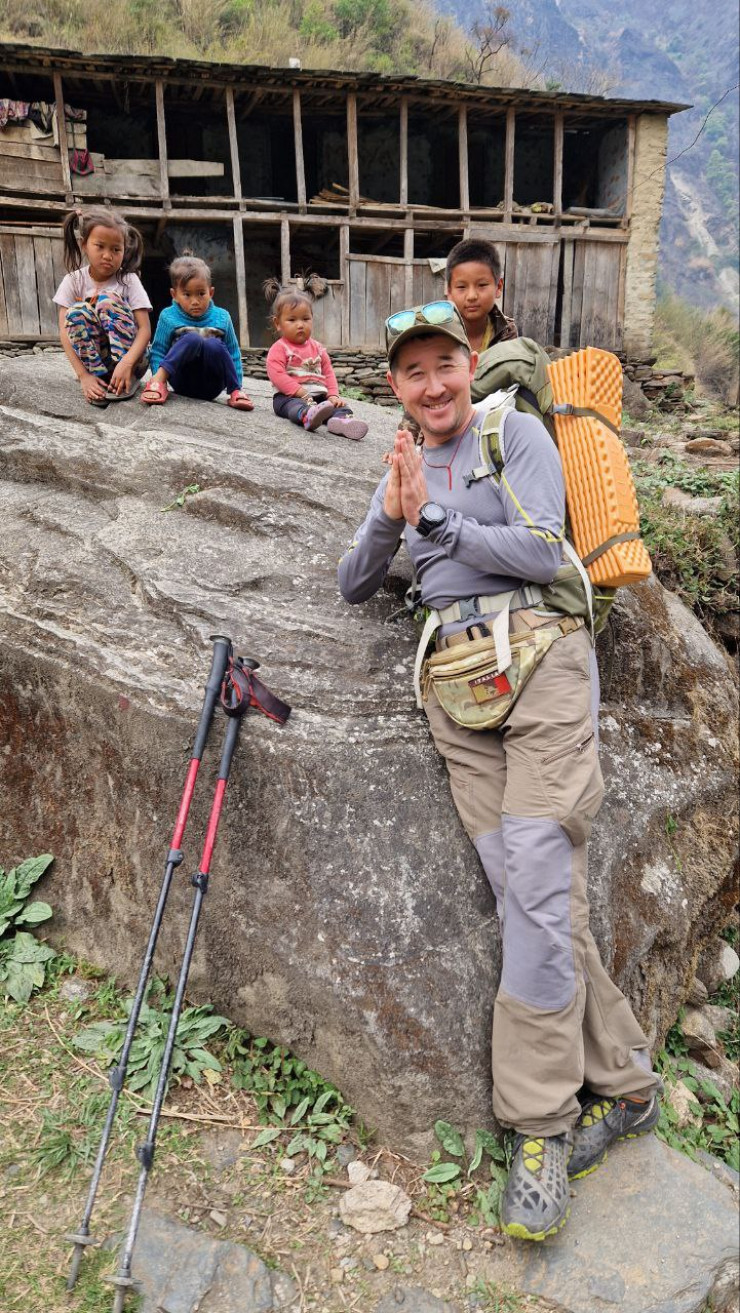 "Обычный резкий подъем в гору и тропа начинают волнообразно тянуть нас наверх. В тот день мы в основном шли по лесу, лес влажный, сочный, диковинный. Заросли бамбука, появились кусты рододендронов, часто встречаются ручьи. Особенностью для нас стали водопады: они проливаются с самого гребня по обе стороны ущелья. В лесу постоянно кто то шуршит, щебечут птицы и трещат цикады. Прошли почти 11 километров за 3 часа 15 минут. Темп держали хороший, сделали одну остановку на чай около хижины, потому что других мест для остановки не было. Встали на ночлег в лоджии Дован (2460 метров), здесь соединяются два ущелья: одно ведет к подножию Дхаулагири 4, а основное - в базовый лагерь Дхаулагири 1", - рассказал Максут Жумаев.