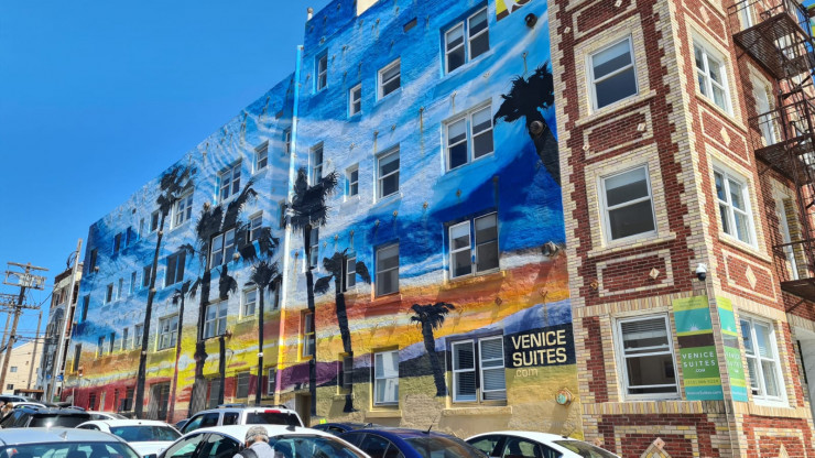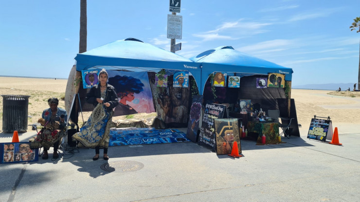 Свою мобильную выставку о Казахстане мы хотели провести в людном, но более спокойном месте. Без лишней суеты. Подумали сначала, что пляж Венеция отлично подходит. Отправились туда. Но спустя минут 10 решили никакой выставки не организовывать. Пляж сильно разочаровал.