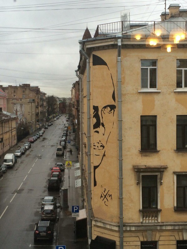 К примеру, буквально на днях на улице Маяковского появилось граффити "Посвящение Даниилу Хармсу". Именно на этой улице жили Владимир Маяковский и Даниил Хармс. Первый - громогласный голос революции, любимец миллионов, увековеченный еще при жизни. А Хармс - не издававшийся, запрещенный, дважды упрятанный в психушку и репрессированный в первые месяцы блокады. Он обрел своего читателя только через 70 лет после смерти.