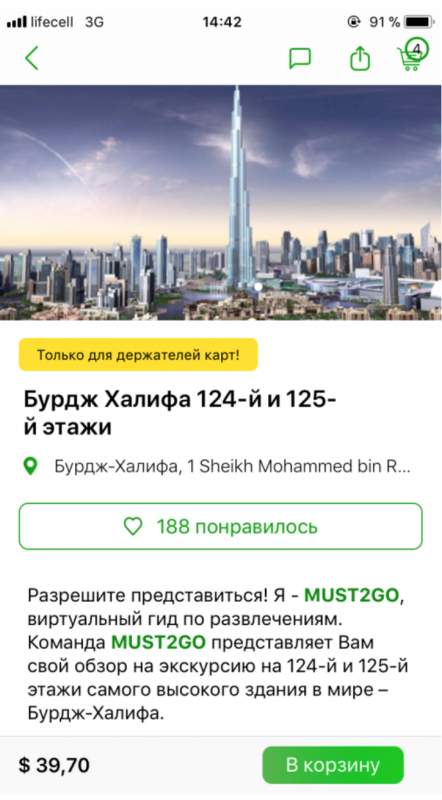 MUST2GO - это сервис, с помощью которого можно забронировать мероприятия для отдыха в ОАЭ, оплатить их и получить электронные билеты в любое время и в любом месте, получить профессиональную консультацию от русскоязычных гидов, которые помогут спланировать отдых в Арабских Эмиратах от "А" до "Я". Клиенты сервиса могут задать любые вопросы гидам по телефону +971 50 823 9700 или в онлайн-чате.