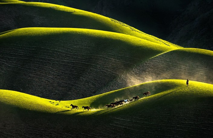 Великолепные по красоте кадры сделал немецкий фотограф Гюнтар Рили (Gunther Riehle) в уезде Текес в Или-Казахском автономном округе на западе Китая. Фотографии опубликовала британская газета Daily Mail, назвав изображенных на них людей "ковбоями Шелкового пути".