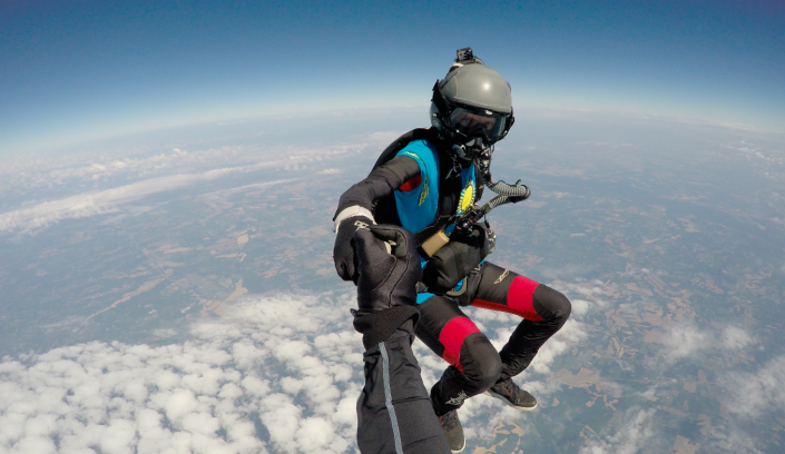 Прыжок выполнялся при помощи кислородного баллона в Теннеси (США) на военном аэродроме. Температура воздуха на высоте была -60 градусов.