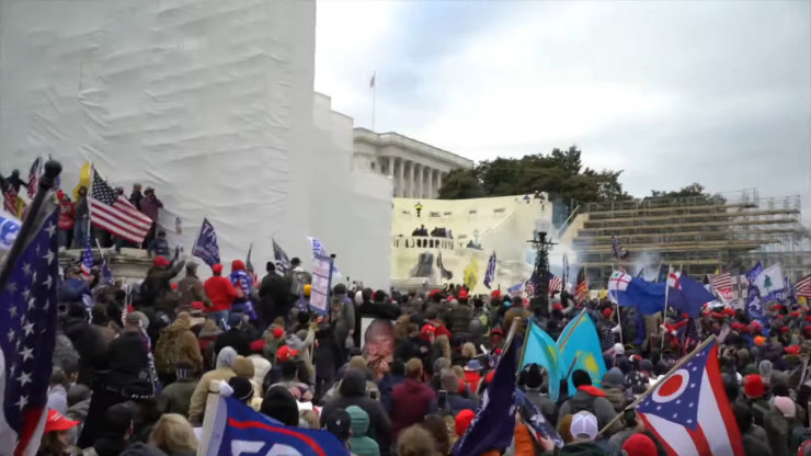 Фото с флагом Казахстана в толпе штурмующих Капитолий в США заметил журналист Ali Harb. Он опубликовал снимок в Twitter.