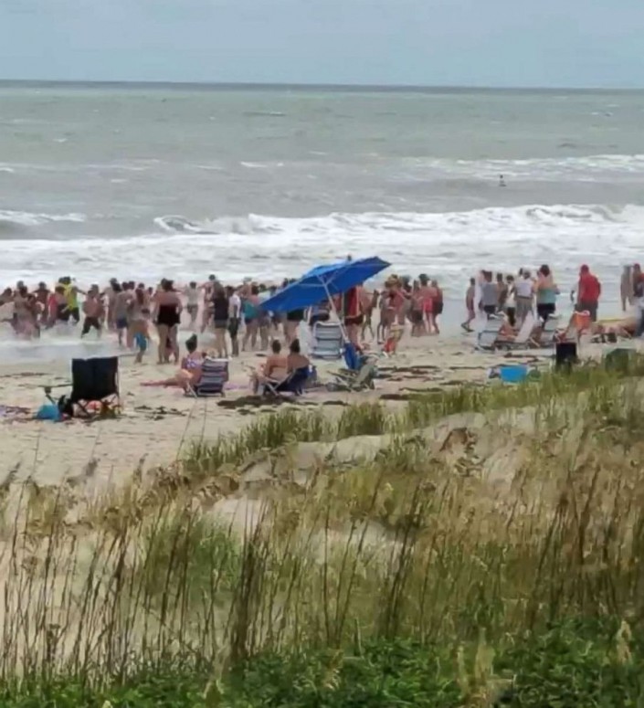 В американском городе Эмералд-Эйл, штат Северная Каролина, десятки человек попытались спасти тонущих пловцов. Об этом сообщает ABC News.