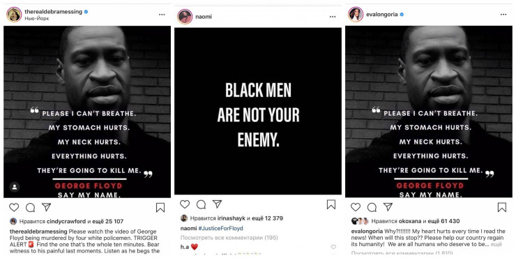 К акции протеста в социальных сетях присоединились известные деятели культуры, звезды музыки, кино и спорта. Ким Кардашьян, Кайли Дженнер, Джиджи Хадид, Дебра Мессинг, Наоми Кэмбэлл, Ева Лонгория и другие знаменитости опубликовали на своих страницах в Instagram фотографию погибшего с требованием правосудия в отношении всех, кто причастен к убийству Джорджа Флойда.