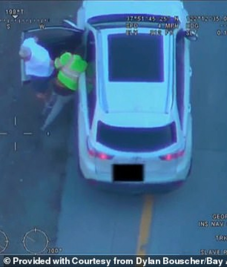 По словам властей, мужчина уверял водителя в том, что полиция пытается причинить ему вред. На кадрах видно, как он садится в автомобиль, вышвырнув водителя на дорогу.