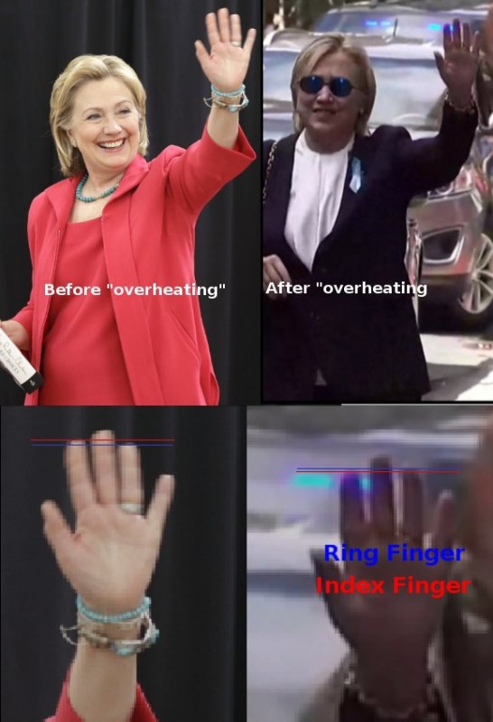 Как сообщалось ранее, Хиллари покинула торжественную церемонию лишь с помощью своих помощников. Однако уже через некоторое время 68-летний политик вновь появилась на публике, рассказав журналистам, что прекрасно себя чувствует. Блогеры удивились тем, насколько хорошо она выглядела, несмотря на явное недомогание, и заподозрили, что вместо Клинтон на публике появился ее двойник.