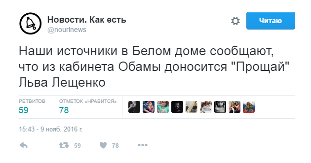 Как и любое другое громкое медийное событие, выборы президента США породили немалое количество интернет-мемов в социальных сетях. Сатира и ирония на тему поражения Клинтон, победы Трампа, или непредсказуемости американских выборов в целом всплывает как в остроумных шутках в микроблогах, так и в рекламных инструментах известных брендов. Наш соотечественник Мурат Дильманов тоже не остался в стороне от ситуации и совместил два популярных тренда: вирусный клип Pen-Pineapple-Apple-Pen и победу Трампа. Tengrinews.kz предлагает небольшую подборку самых популярных #election-mem'ов на данную минуту.