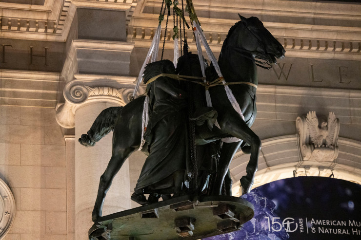 Скульптура изображала 26-го президента верхом на лошади с мужчиной-индейцем и африканцем по обе стороны от него. Демонтаж выполнен в соответствии с решением 2020 года на фоне масштабных протестов движения Black Lives Matter после гибели афроамериканца Джорджа Флойда от действий полицейского Дерека Шовена, которому дали 22 года тюрьмы.
