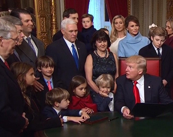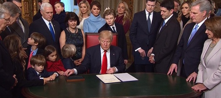 Мероприятие прошло в непринужденной атмосфере в так называемой президентской комнате в Капитолии. Для подписания Трамп использовал несколько ручек. В помещении в это время присутствовали лидеры Республиканской партии, а также лидер демократической фракции меньшинства Нэнси Пелоси. Также рядом с новым президентом находились его дети и внуки.