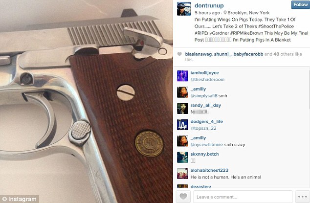 На своей странице в Instagram Бринсли написал, что хочет отомстить полицейским за смерть Эрика Гарнера и Майкла Брауна, которые ранее погибли от рук полицейских.