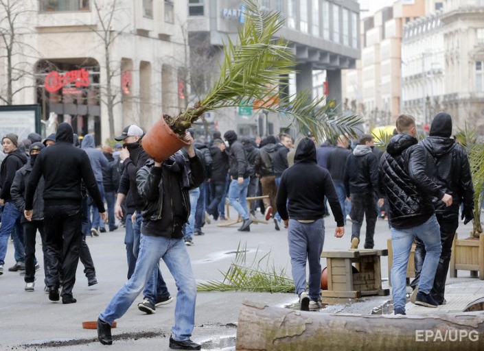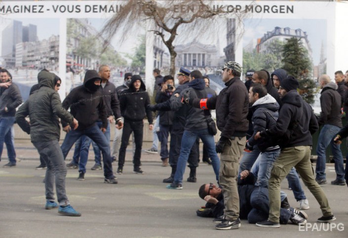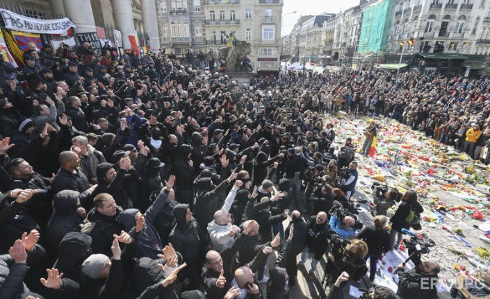 На акции памяти жертв теракта в Брюсселе националисты устроили беспорядки Фото с сайта Gordonua.com. EPA/UPG