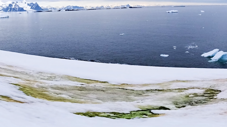 Антарктида покрывается зеленым снегом Кадр из видео Cambridge University