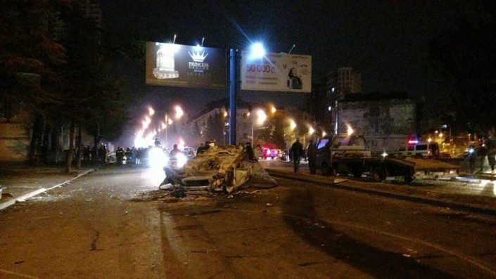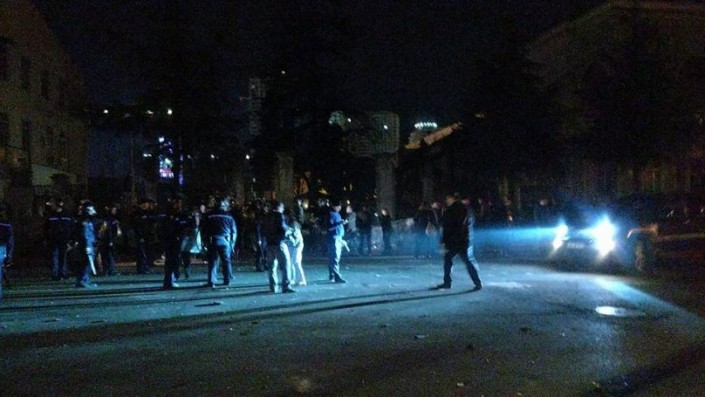 Однако толпа на этом не успокоилась, напротив, митингующие стали жечь костры на улице Чавчавадзе, рушить ограды, кидать петарды и бутылки с зажительной смесью во двор здания патрульной полиции, громить и жечь полицейские машины.