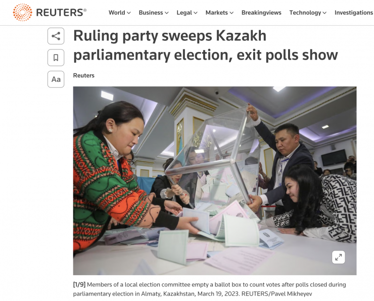В агентстве Reuters отметили, что в Казахстане прошли внеочередные парламентские выборы, которые, как ожидается, должны "завершить перестановки во власти".
