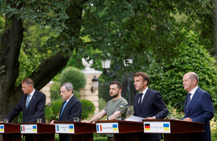 Лидеры Франции, Германии, Италии и Румынии поддержали заявку Украины на вступление в ЕС, заявив, что ей должен быть предоставлен "немедленный" статус кандидата. Между тем президент Франции Эммануэль Макрон подчеркнул, что 27 членов ЕС будут поддерживать Украину до ее победы над Россией.