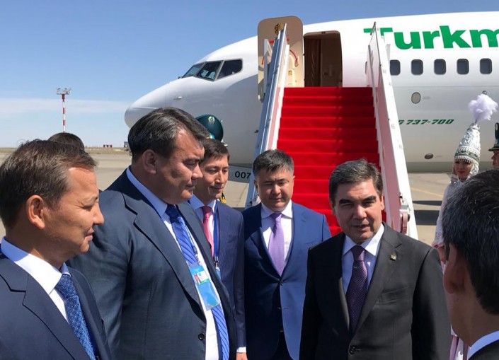 Ближе к полудню в Актау прилетел президент Туркменистана. Всех журналистов к борту с Гурбангулы Бердымухамедовым не пустили, но по появившимся позже фото видно, что одним из первых на казахской земле гость из соседней страны увидел министра национальной экономики Тимура Сулейменова.