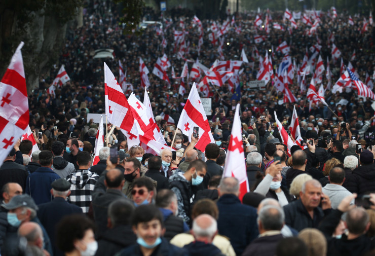 Около половины митингующих прибыли на акцию "Свободу Мише!" из регионов, другая половина - это жители столицы. По данным СМИ, это самая крупная протестная акция в Грузии с 2012 года.