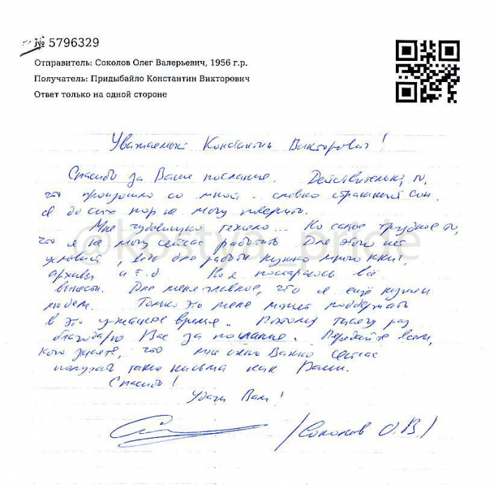 Ранее текст письма опубликовал в Facebook журналист Константин Придыбайло.