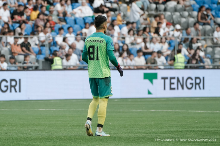 37' - Опасный удар из-за пределов штрафной со стороны футболиста QJ League. Однако Нурлыбек Мусылманбек все контролировал, и мяч пролетел рядом со штангой