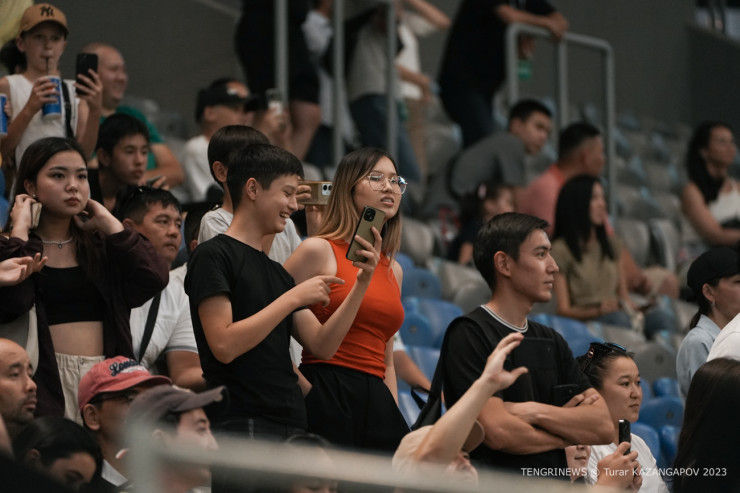 Зрители "отрываются" на трибунах под песни "Ирины Кайратовны" и делают селфи.