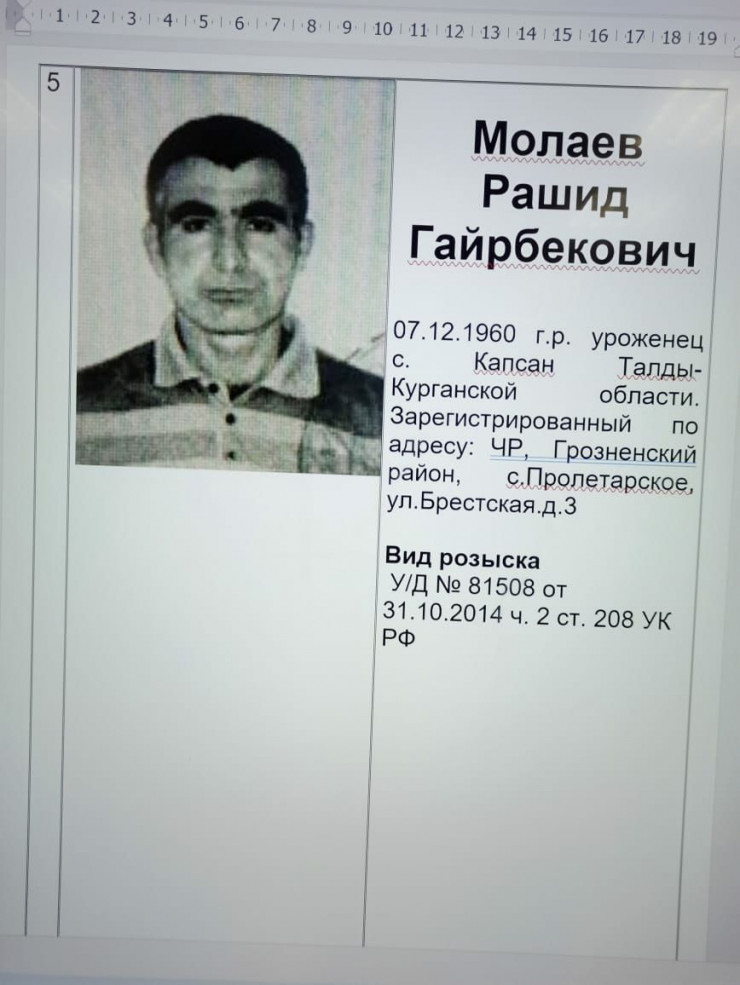 Там же Кадыров выложил фотографии уничтоженных террористов. Судя по фото, один из них являлся уроженцем Казахстана. Это некто Молаев Рашид Гайрбекович 1960 года рождения.