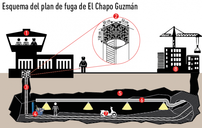Напомним, "наркобарон номер один" сбежал из особо охраняемой тюрьмы в Мексике в ночь на 12 июля. Стражи порядка не сразу подняли тревогу. Проверять камеру пошли через 10 минут и вместо наркобарона обнаружили дыру в полу. Эль Чапо покинул стены исправительного учреждения "Альтиплано" по тоннелю шириной около 50 сантиметров, вырытому на десятиметровой глубине. Прежде, чем вырваться на свободу, преступник преодолел под землей около 1,5 километра. В тоннеле был обнаружен мотоцикл на рельсах.